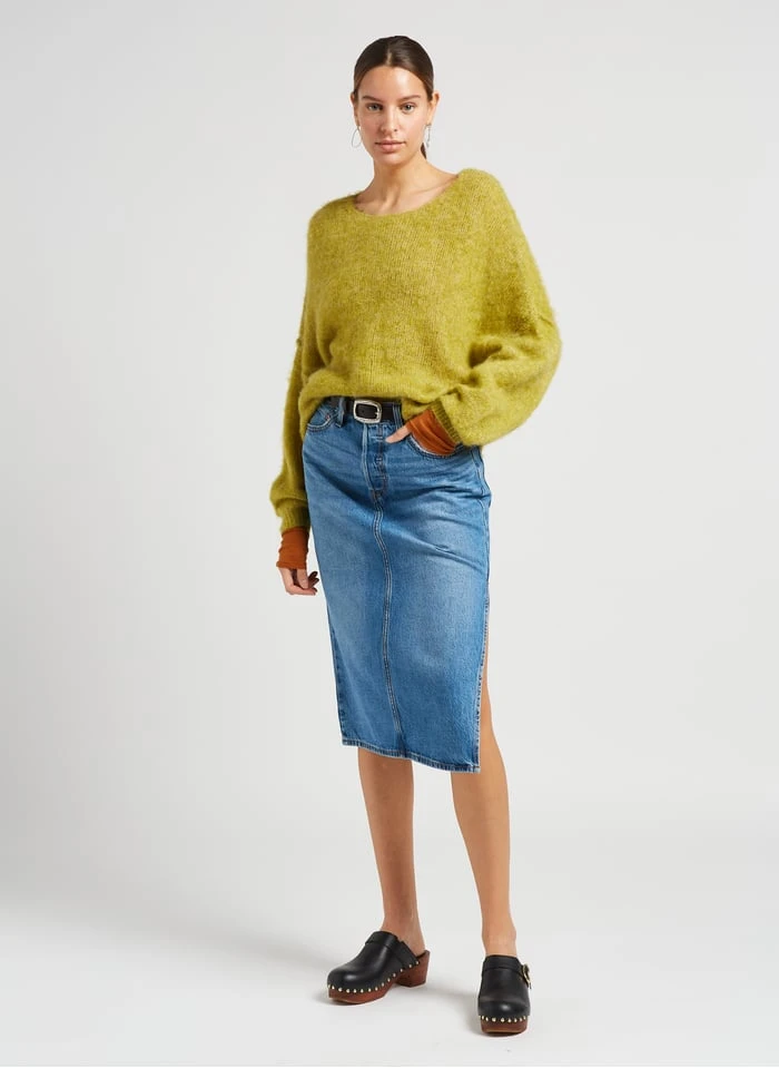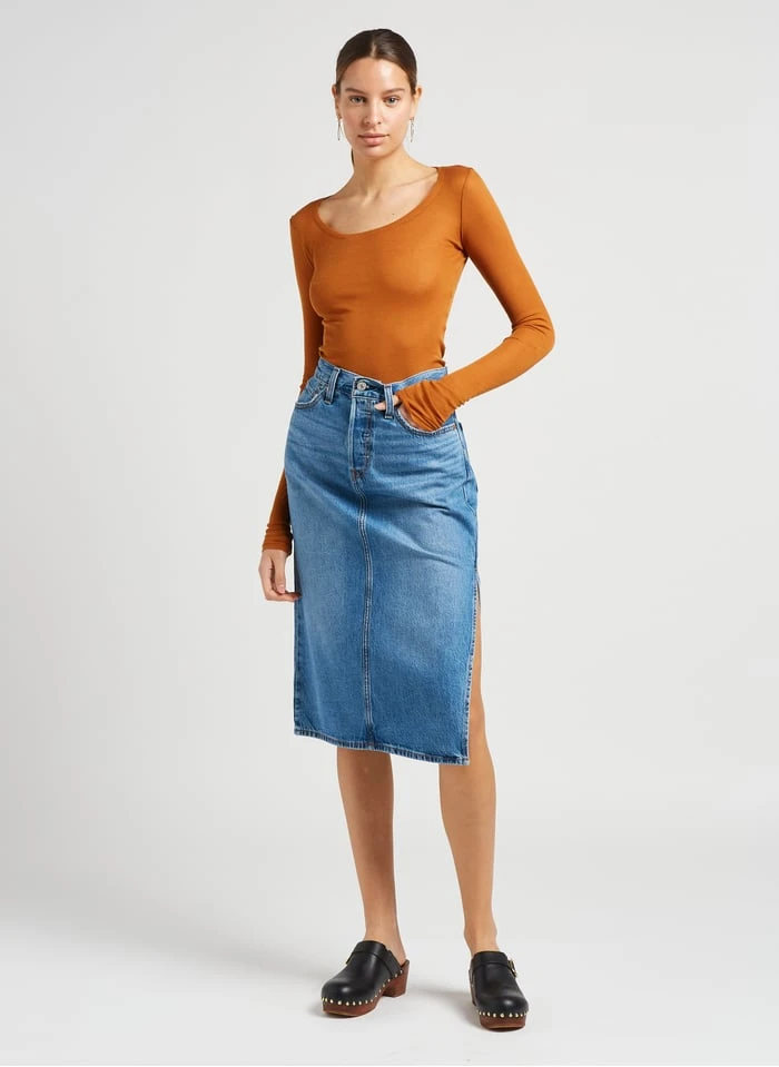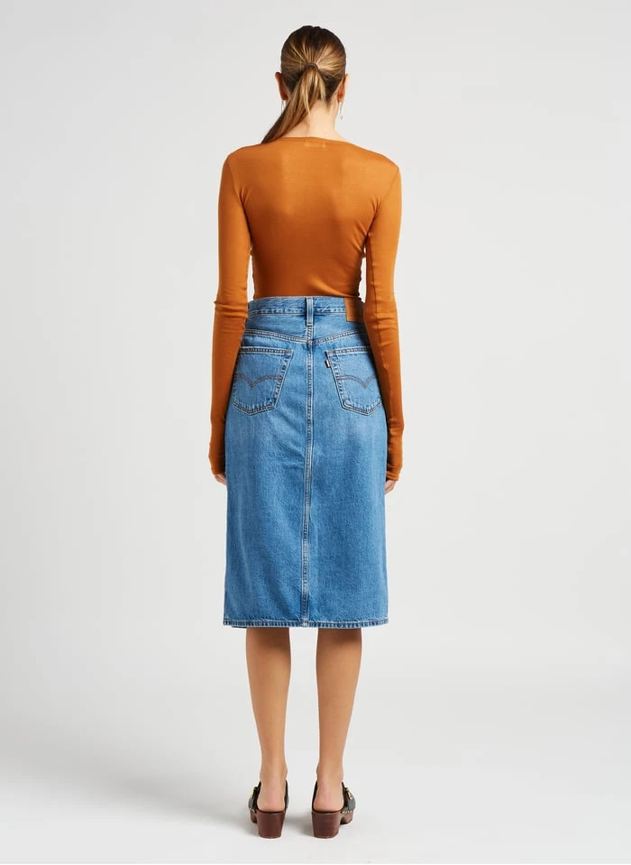 Dit model wordt aangeboden met Rechte spijkerrok by LEVI’S, Gladde, leren klompen by BA & SH