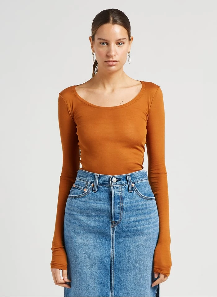 Katoenen T-shirt met ronde hals en lange mouw by American Vintage voor Dames.