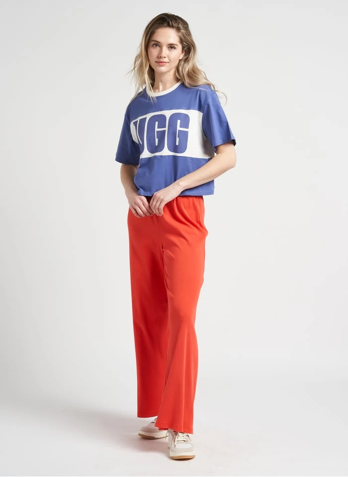 Dit model wordt aangeboden met Ruimvallend T-shirt met ronde hals by UGG, Lage, leren sneakers by NO NAME