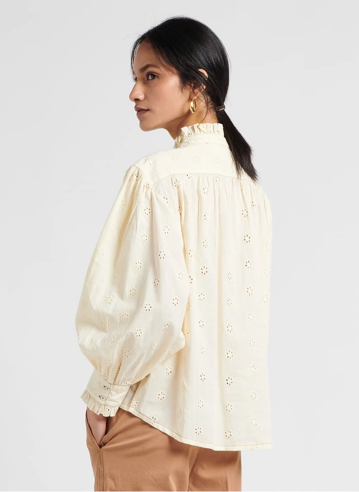 Katoenen top met Victoriaanse kraag by MKT voor Dames.