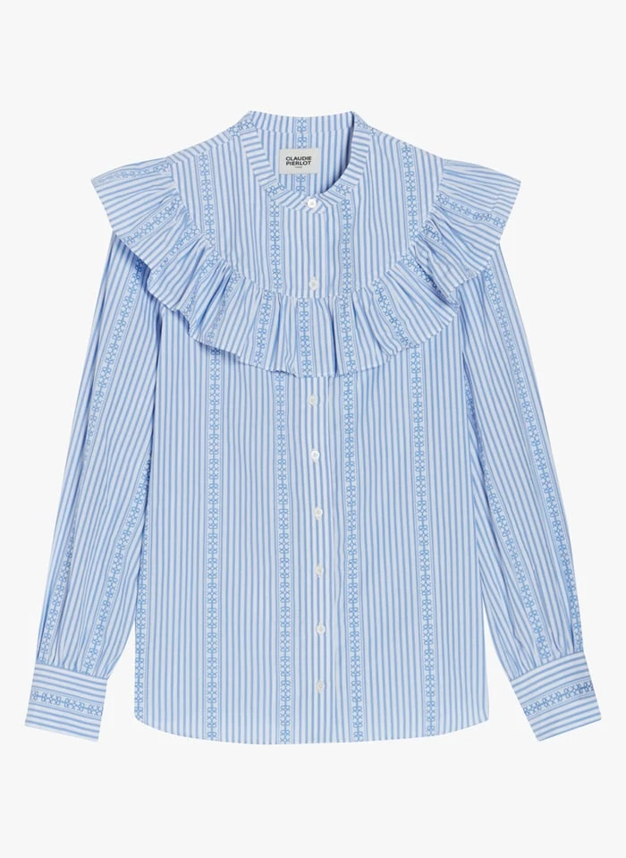 Gestreepte, katoenen blouse met volants by Claudie Pierlot voor Dames.