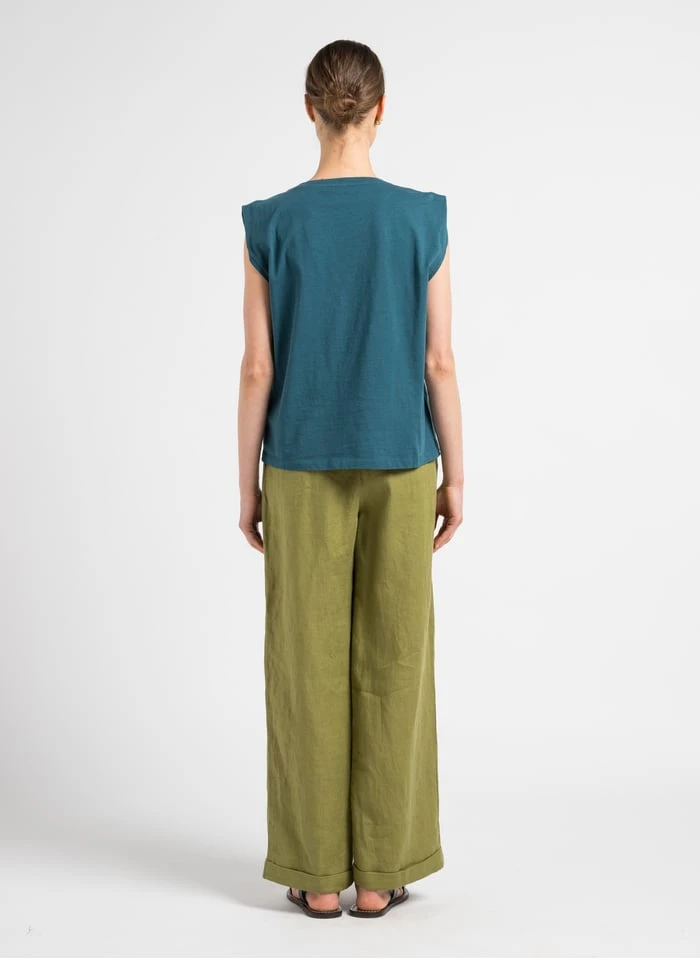 Dit model wordt aangeboden met Wijde, linnen broek by DES PETITS HAUTS