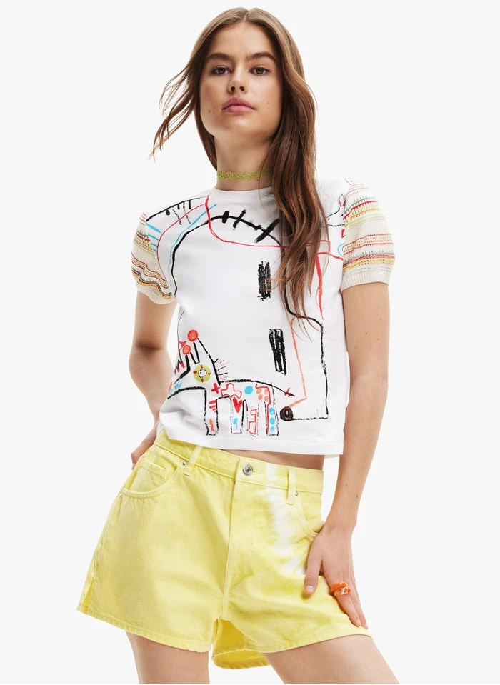 Kort, katoenen T-shirt met ronde hals by Desigual voor Dames.