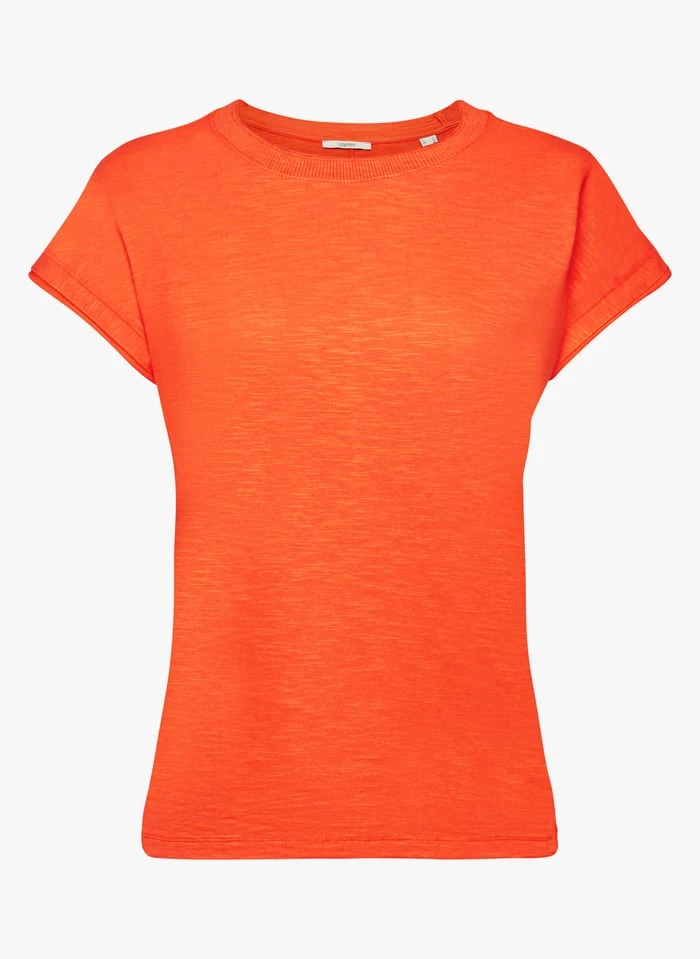T-shirt van katoenmix met opgerolde randen by Esprit voor Dames.