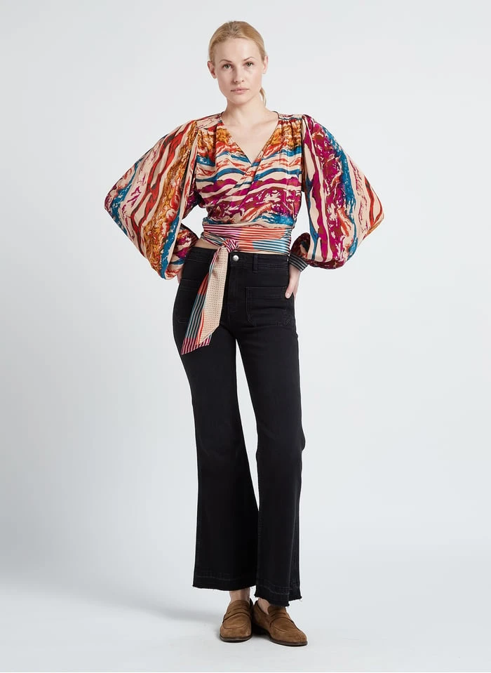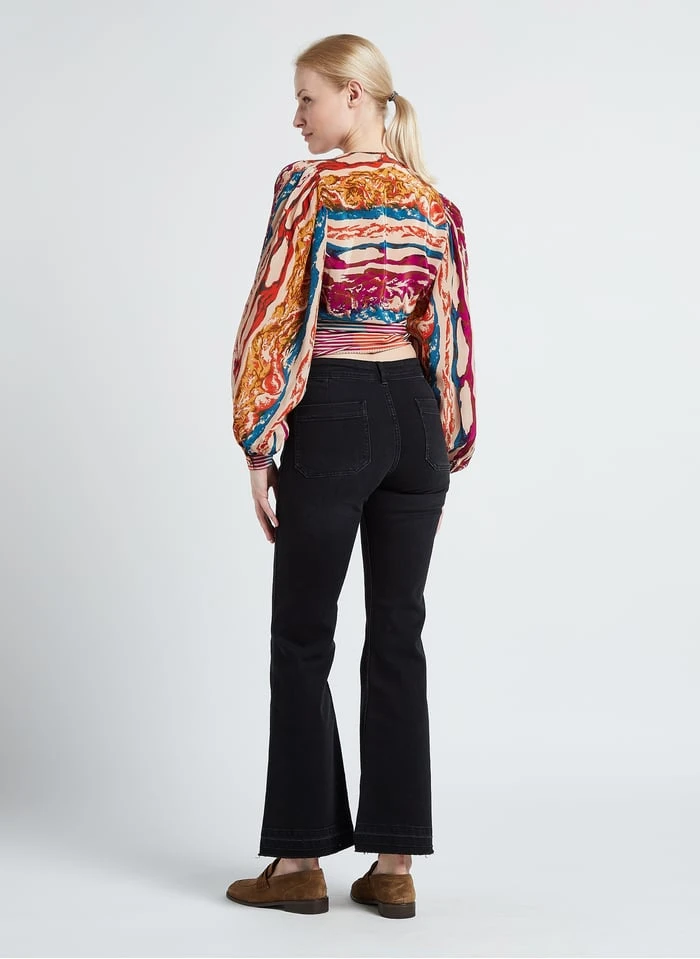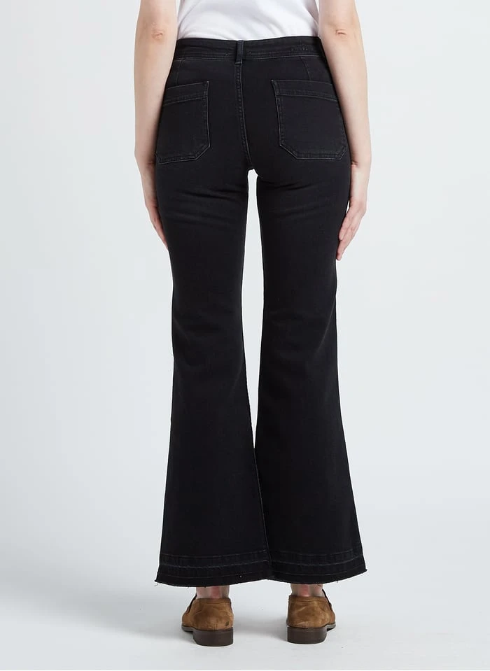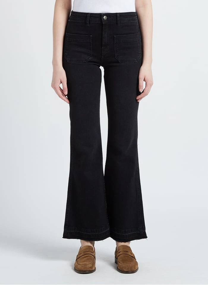 Katoenen jeans met wijd uitlopende pijpen en verwassen effect by Swildens voor Dames.