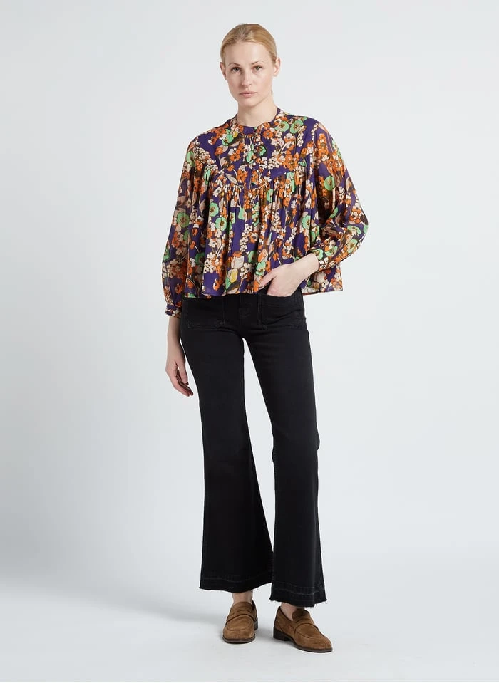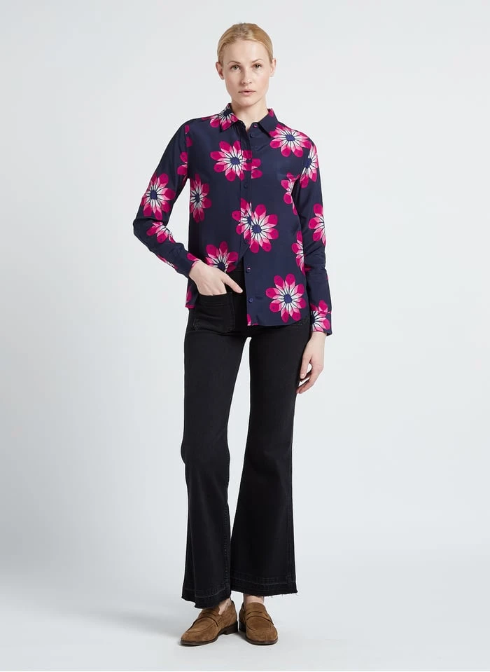 Dit model wordt aangeboden met Blouse met klassieke kraag en bloemenprint by SOI PARIS