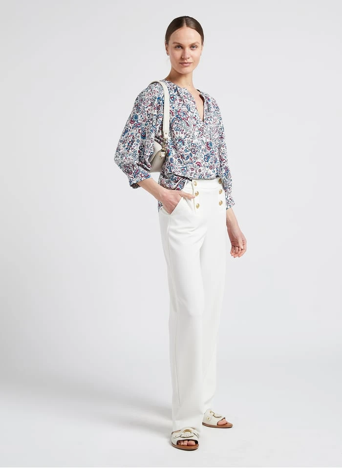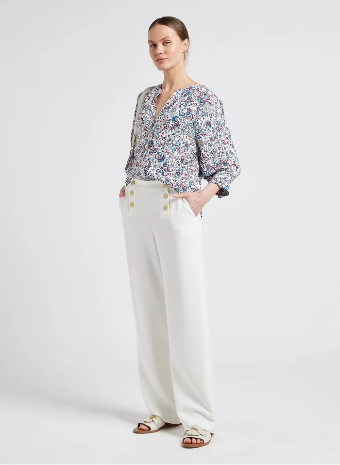 Dit model wordt aangeboden met Leren schoudertas by LANCASTER PARIS, Wijde broek met decoratieve knopen by GERARD DAREL
