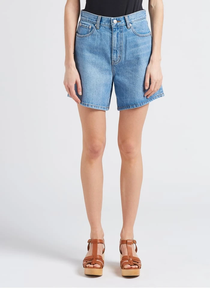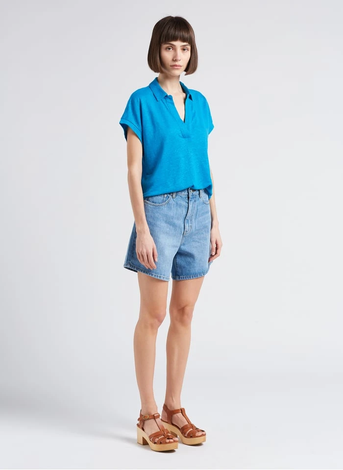 Dit model wordt aangeboden met Top met ronde hals katoenblend by MAISON 123, Hoge, leren sandalen by SESSUN