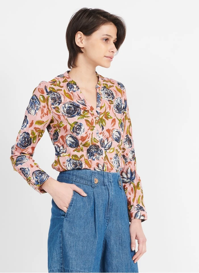 Mes Demoiselles CLEON – Oversized, Linnen Overhemd Met Print | Blauw