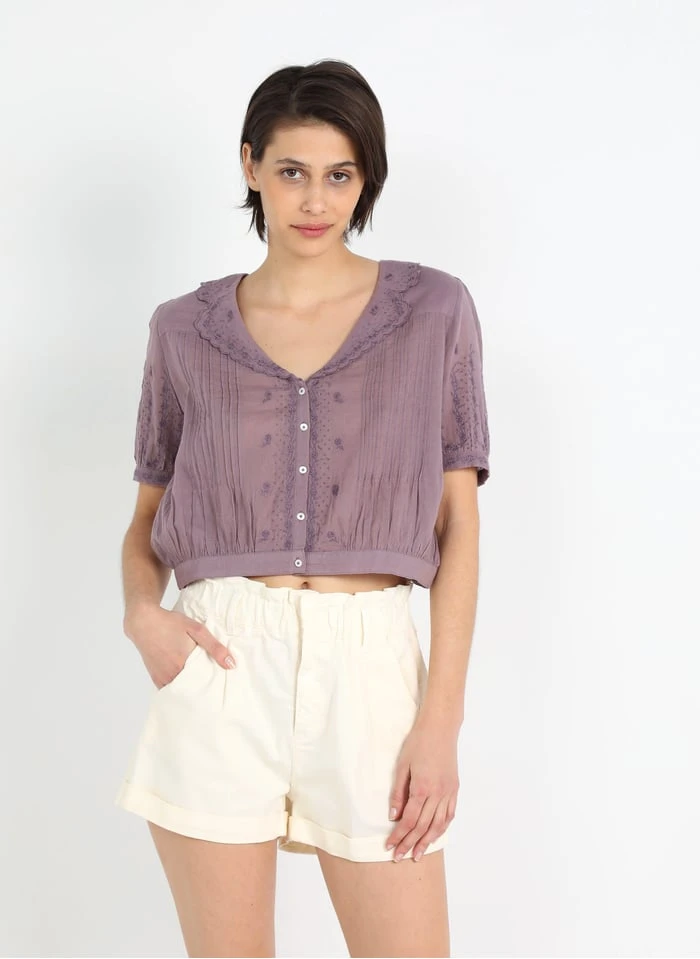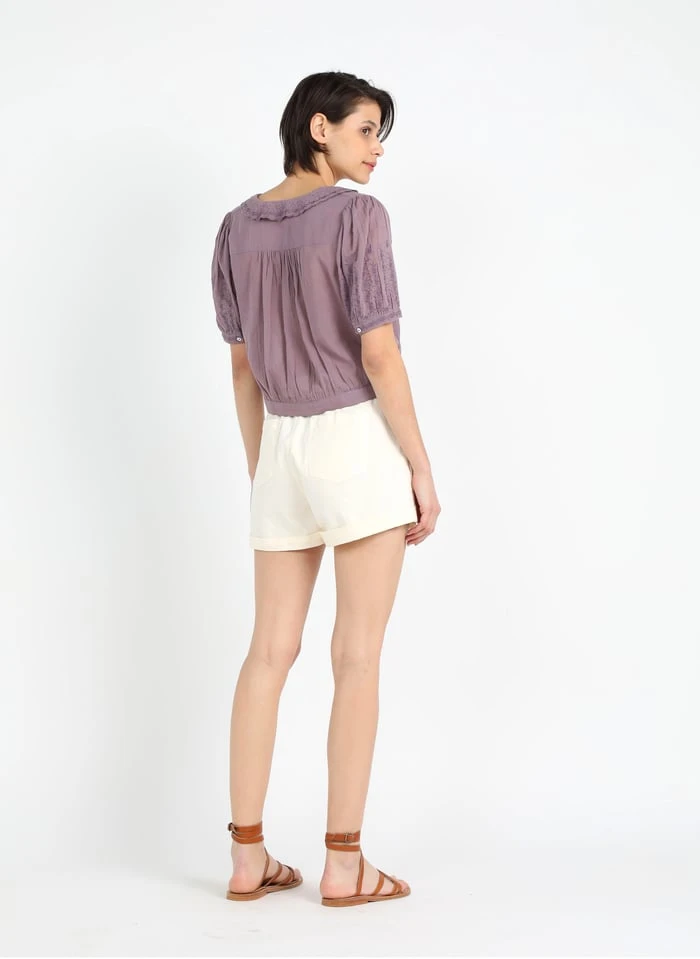 Korte, katoenen blouse met borduurwerk by Emile et ida voor Dames.