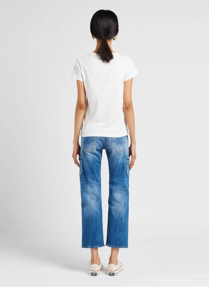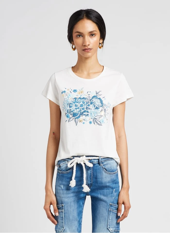 Katoenen T-shirt met ronde hals en zeefdruk by Le Temps des Cerises voor Dames.