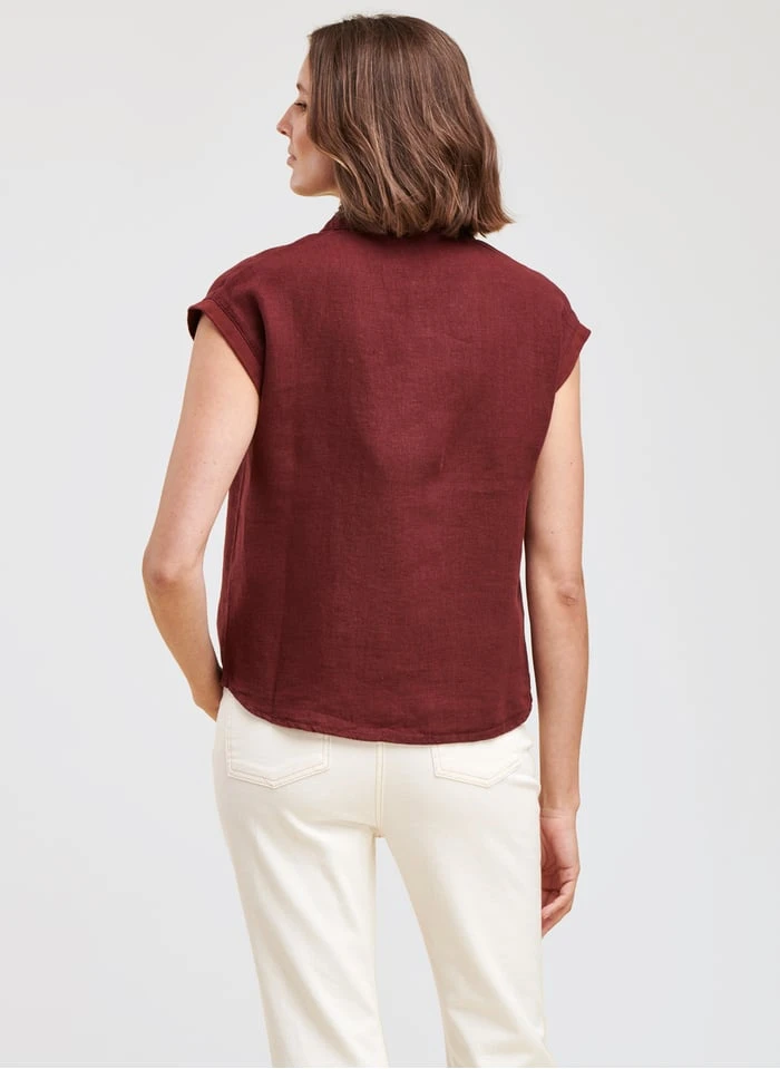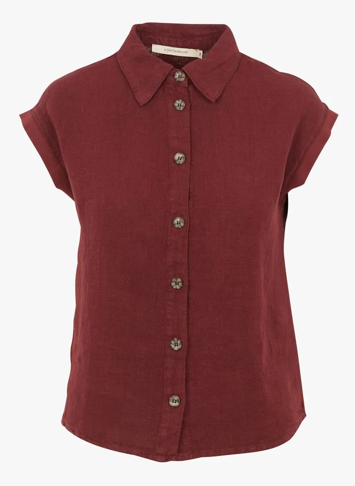 Linnen blouse met klassieke kraag by La Fée Maraboutée voor Dames.