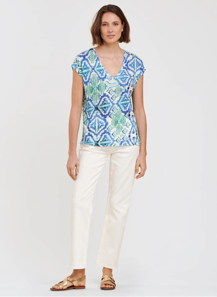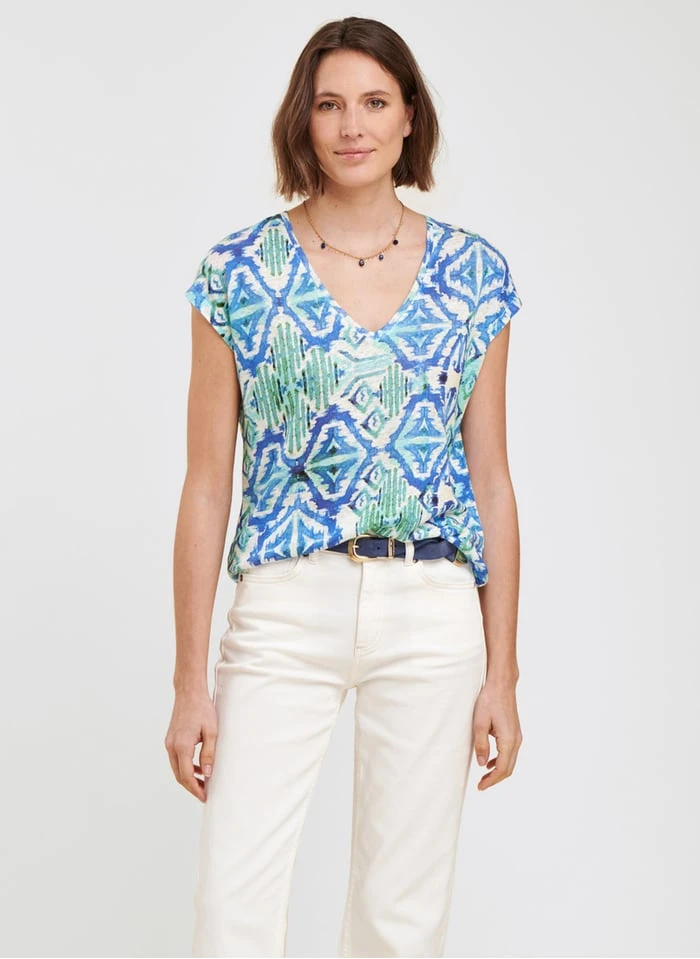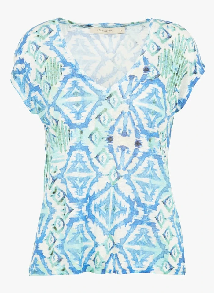 Linnen T-shirt met V-hals en print by La Fée Maraboutée voor Dames.