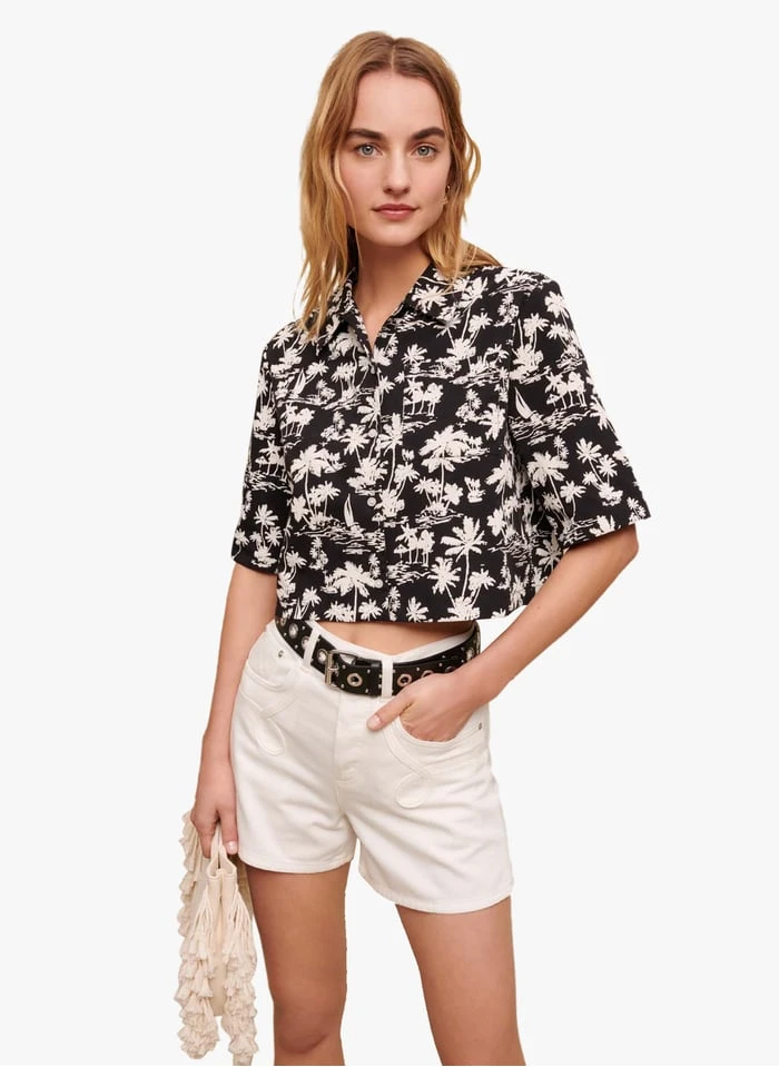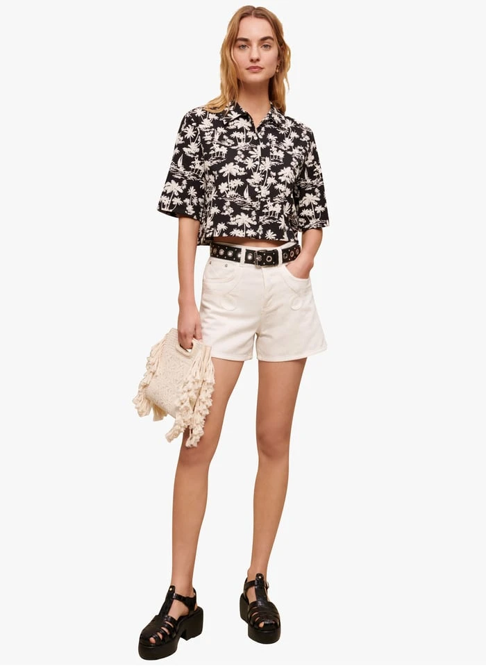 Katoenen spijkershort met borduurwerk by Maje voor Dames.