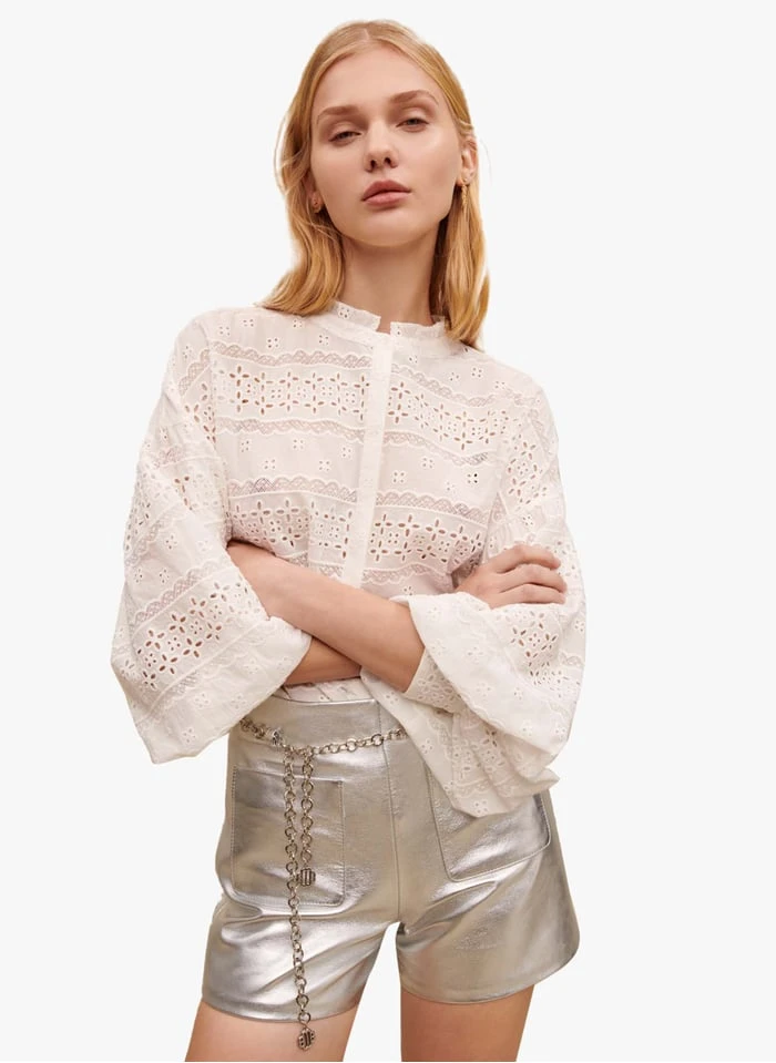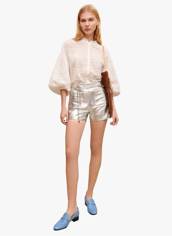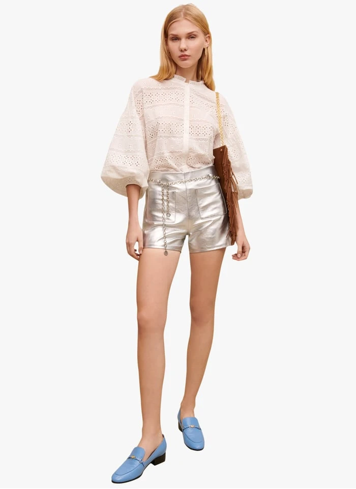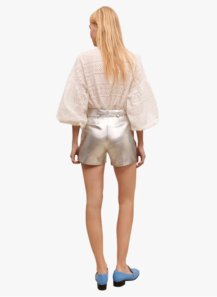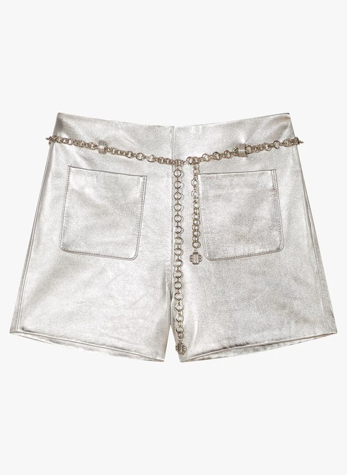 - Ce short en cuir métallisé est une pièce tendance et moderne. Coupe droite, il est pensé pour mettre en valeur votre silhouette. Il est paré de deux poches à l’avant, et d’une fine ceinture à chaîne Clover Maje.