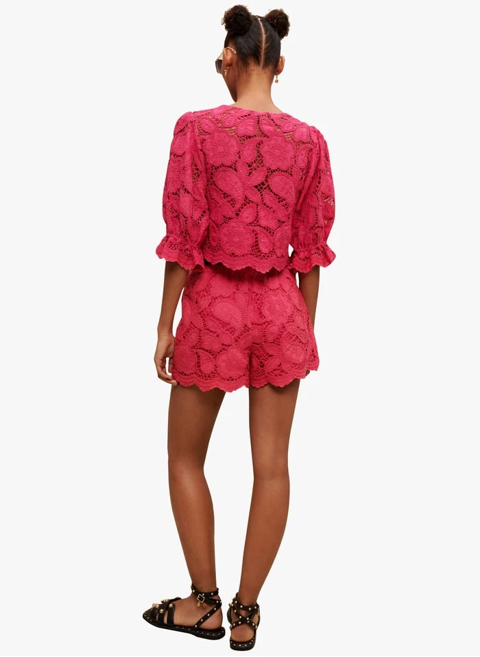 Top van katoen met V-hals en opengewerkt borduurwerk by Maje voor Dames.
