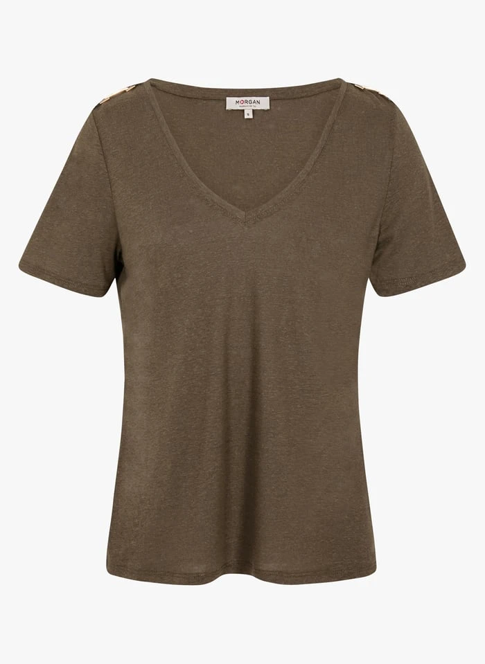 T-shirt met V-hals linnenblend by Morgan voor Dames.