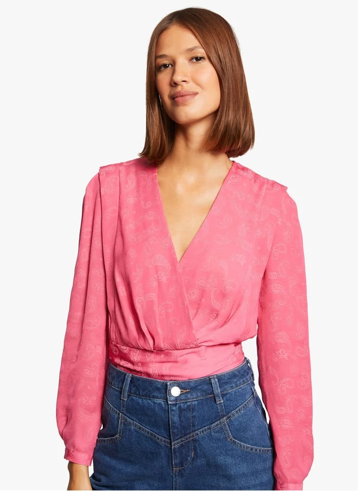 CEZARINE – Rechte, Katoenen Blouse Met V-hals En Print | Roze