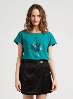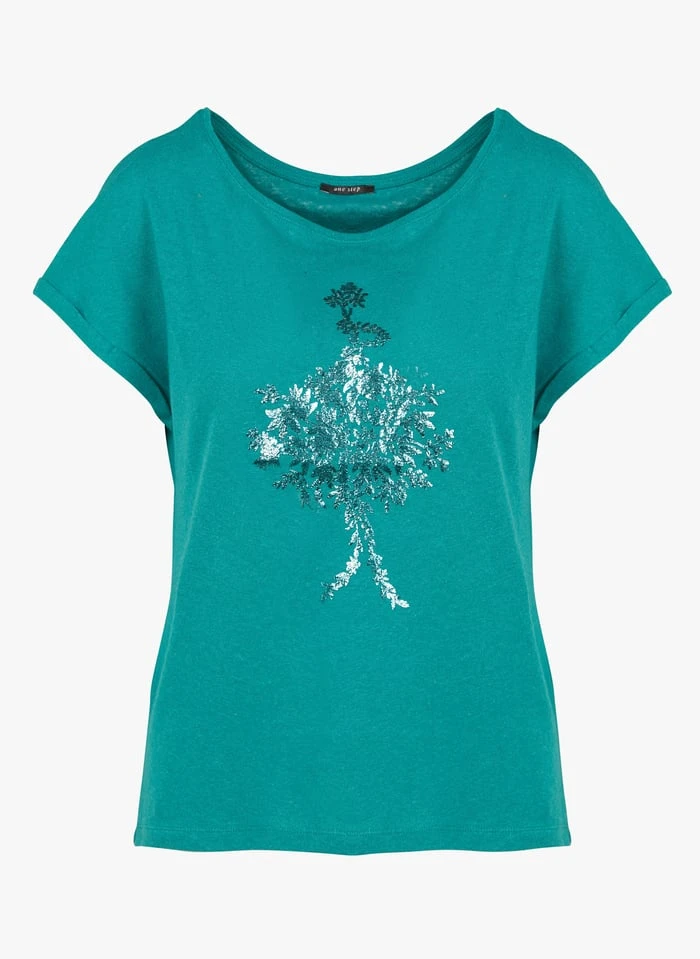 T-shirt met boothals en zeefdruk katoenblend by One Step voor Dames.