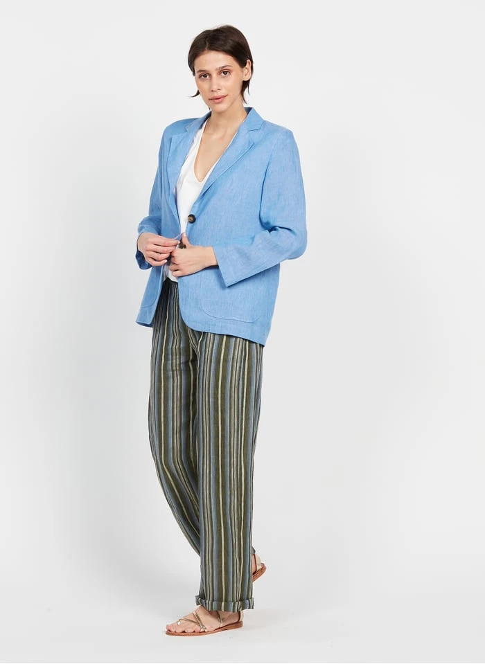 Wijde, gestreepte, linnen broek by Diega voor Dames.