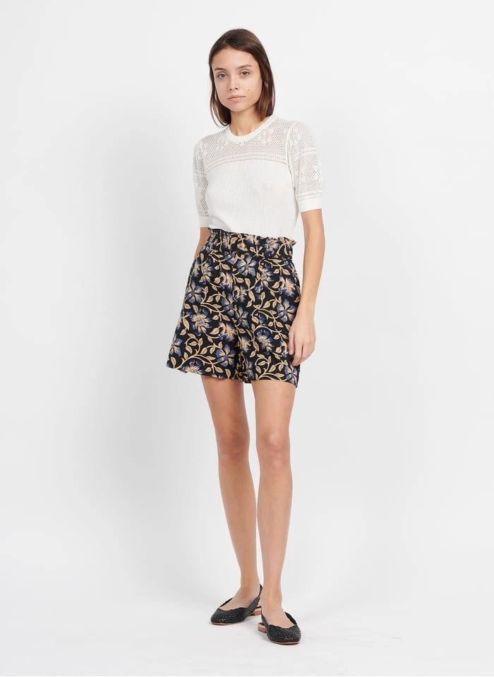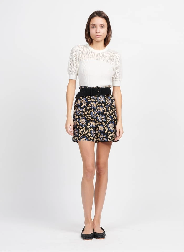 Dit model wordt aangeboden met Top van tricot met ronde hals by PETITE MENDIGOTE, Leren ceintuur by PETITE MENDIGOTE