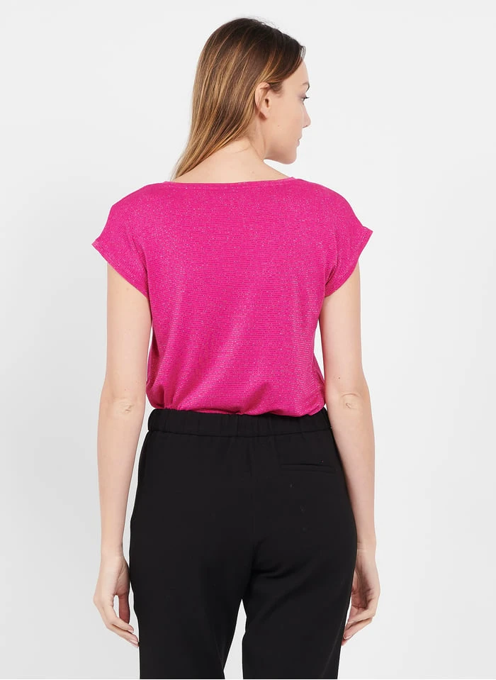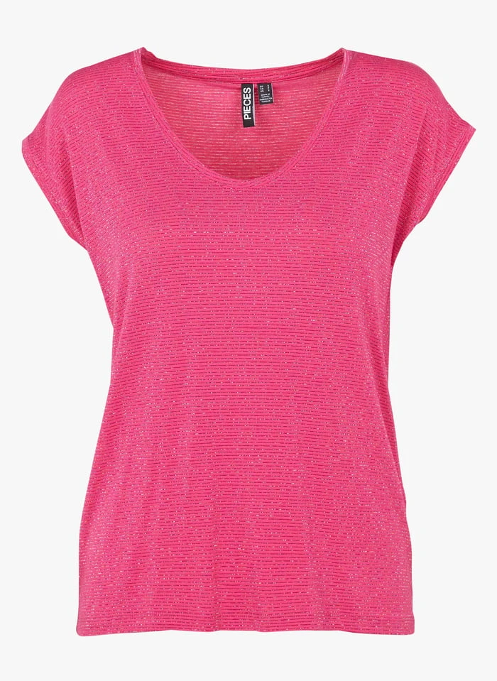 T-shirt met V-hals en smal streepjesmotief in glansdraad by Pieces voor Dames.
