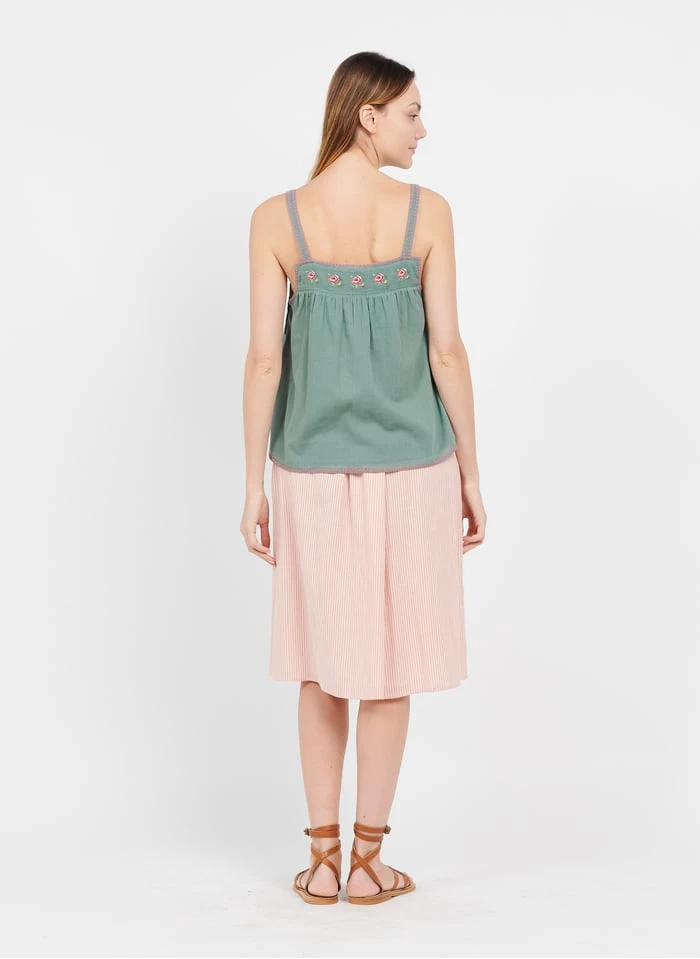 Dit model wordt aangeboden met Halflange gestreepte katoenen rok by EMILE ET IDA