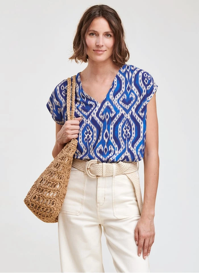 LE TEMPS DES CERISES ROSITA – Top Met V-hals En Abstract Motief | Blauw
