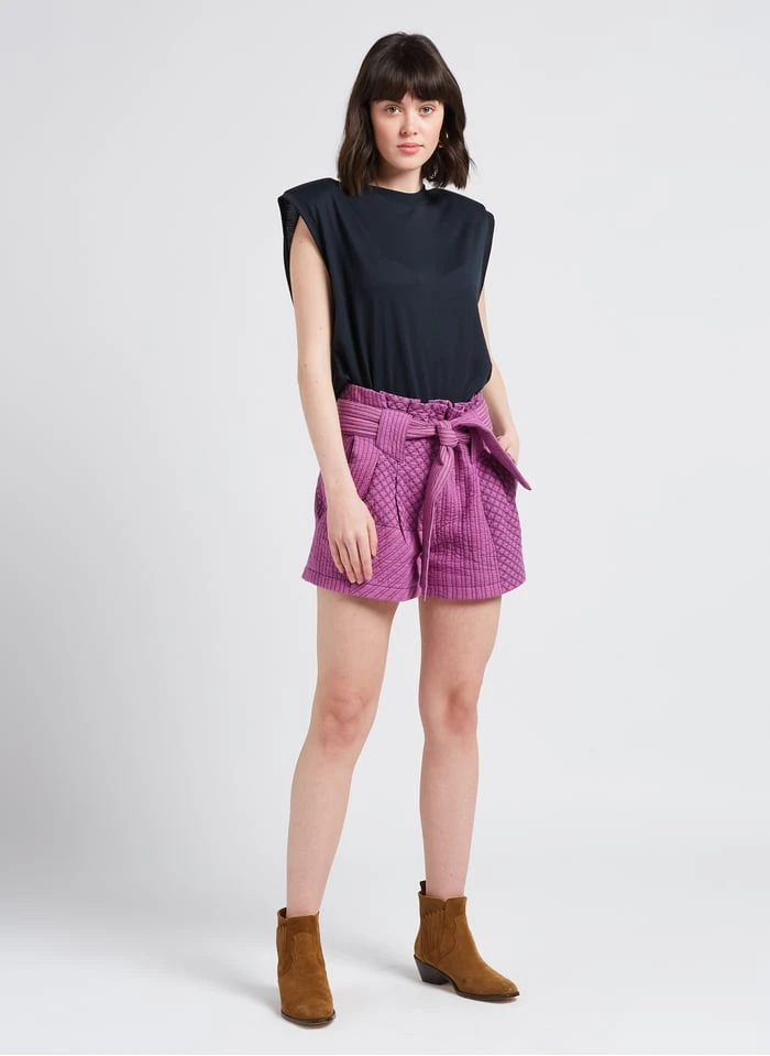 Dit model wordt aangeboden met Ruimvallend T-shirt met ronde hals en schoudervulling by SESSUN
