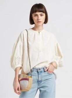 Blouse met ronde hals en borduursel katoenblend by Sessun voor Dames.