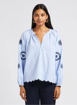 Katoenen blouse met V-hals en strepen by Stella Forest voor Dames.