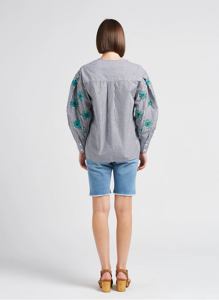 Gestreepte, katoenen blouse met ronde hals en borduursel by Stella Forest voor Dames.