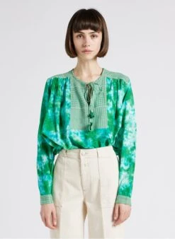 Katoenen top met ronde hals en tie-dyeprint by V De Vinster voor Dames.
