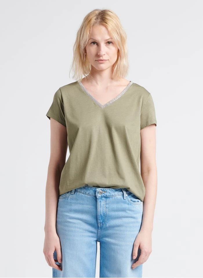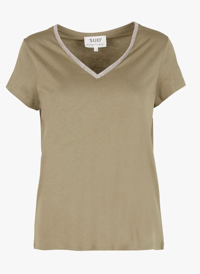 T-shirt van katoenmix met V-hals by Sud Express voor Dames.