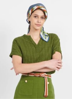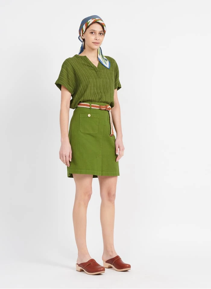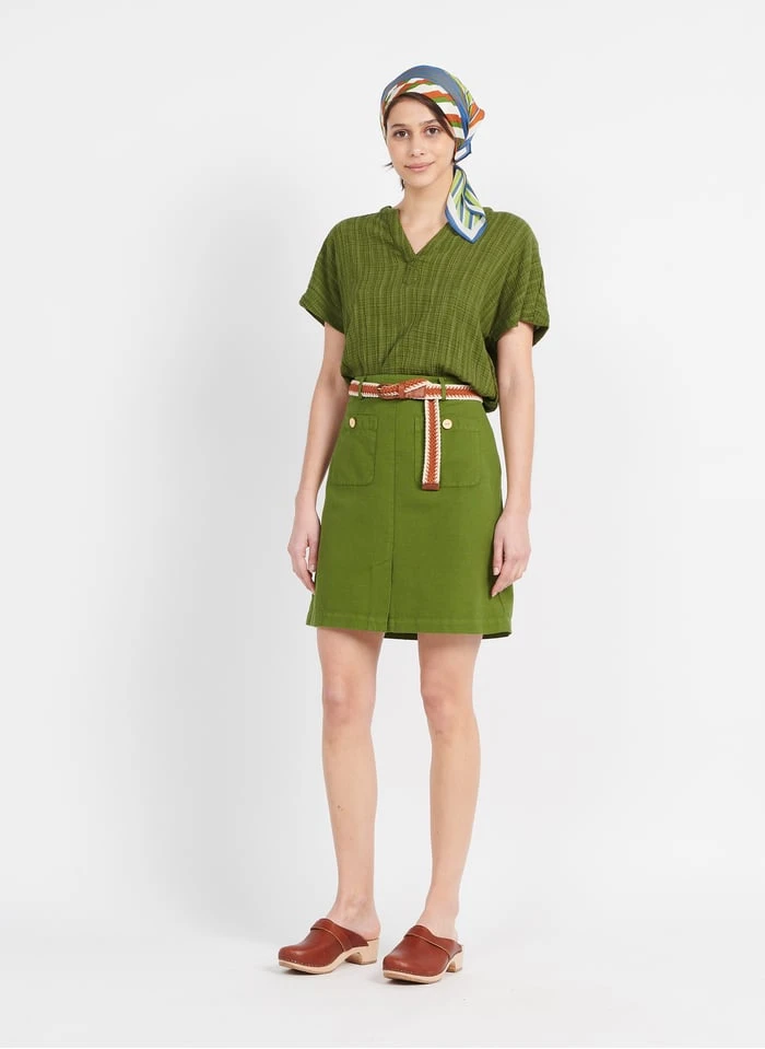Dit model wordt aangeboden met Gestreepte foulard by NICE THINGS, Korte rok linnenblend by NICE THINGS