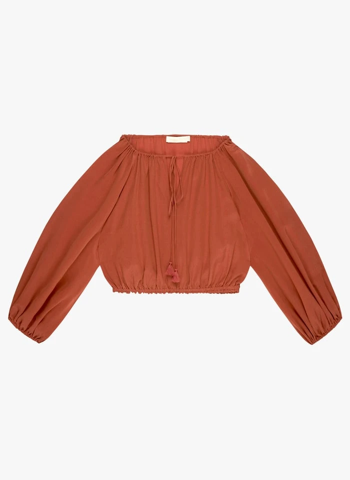 Tara Jarmon TITOUAN – Soepelvallende Top Met Maokraag | Rood