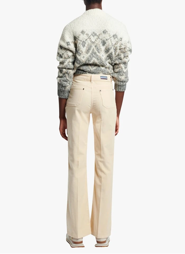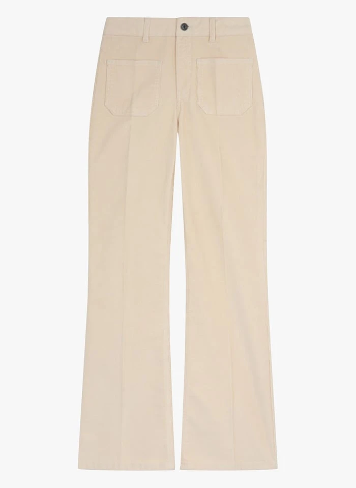 - Classique de la maison Vanessa Bruno, le pantalon Dompay se réinvente à nouveau cette saison dans un velours côtelé aussi chic que délicat. Même taille haute, même coupe flare, même style atemporel : cet essentiel revisité se portera aussi bien avec une paire de baskets que vos bottines favorites. Pantalon en velours côtelé. Coupe flare. Taille haute avec passants de ceinture. Deux poches plaquées devant. Deux poches à l’arrière. Fermeture zippée et boutonnée.