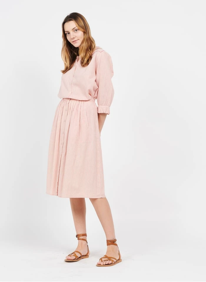 Dit model wordt aangeboden met Halflange gestreepte katoenen rok by EMILE ET IDA