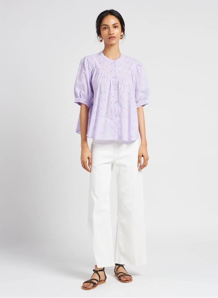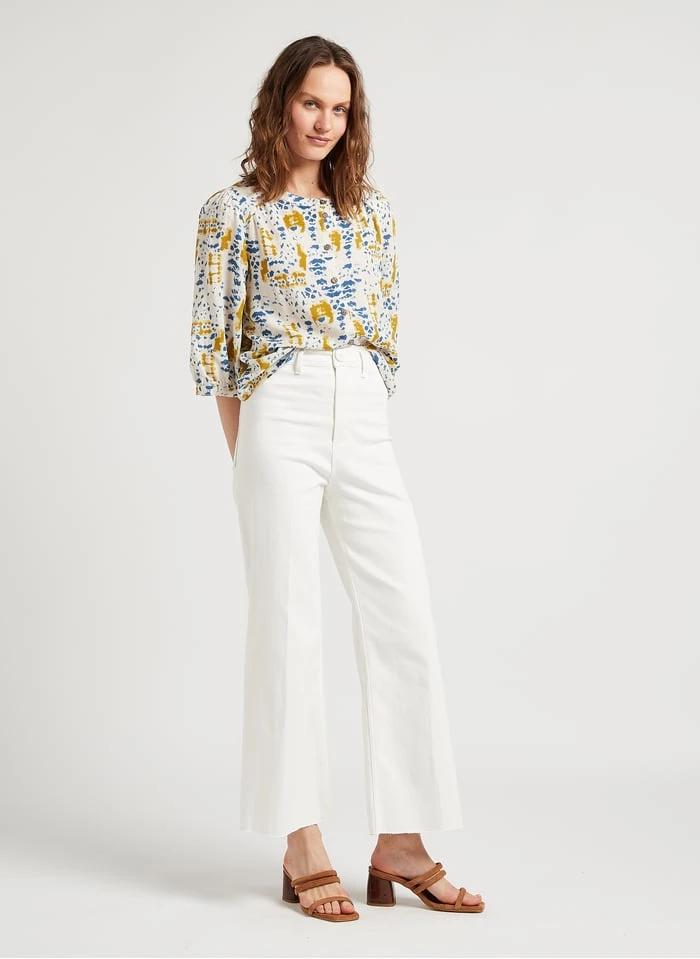 Dit model wordt aangeboden met Soepelvallende knoopblouse met reverskraag by MARIE SIXTINE