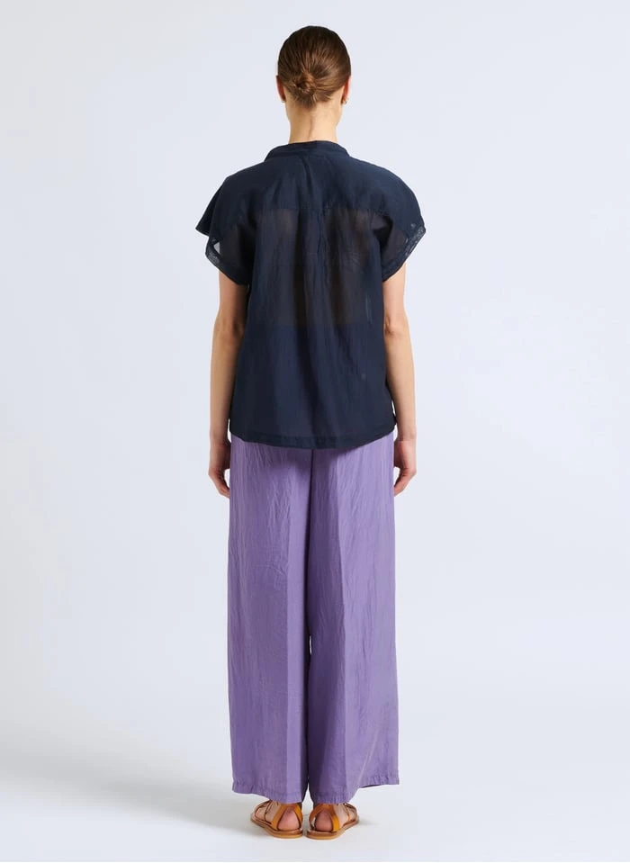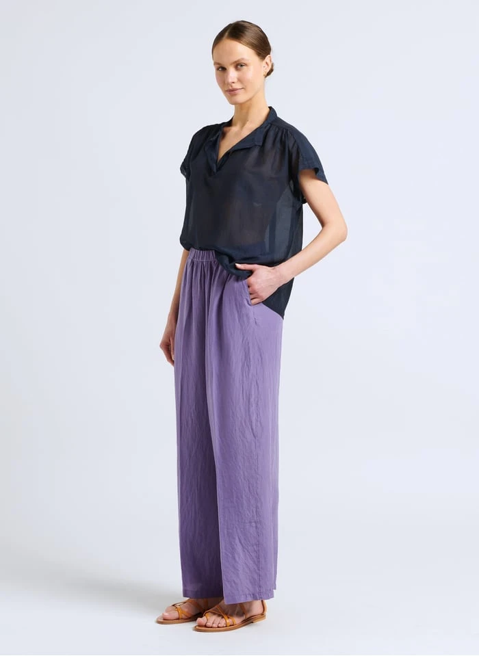 Dit model wordt aangeboden met Wijde blouse van katoen en zijde met Tunesische kraag by POMANDERE