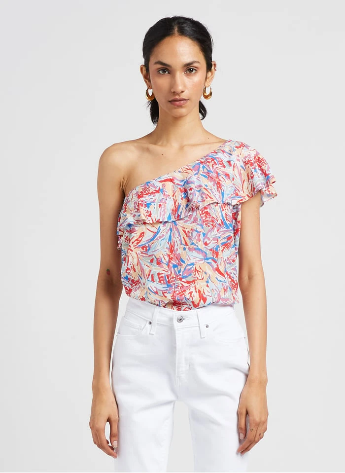 CEZARINE – Rechte, Katoenen Blouse Met V-hals En Print | Roze
